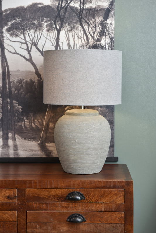 Grey Porcelain Lamp with Ribbed Detailing and White Shade Small