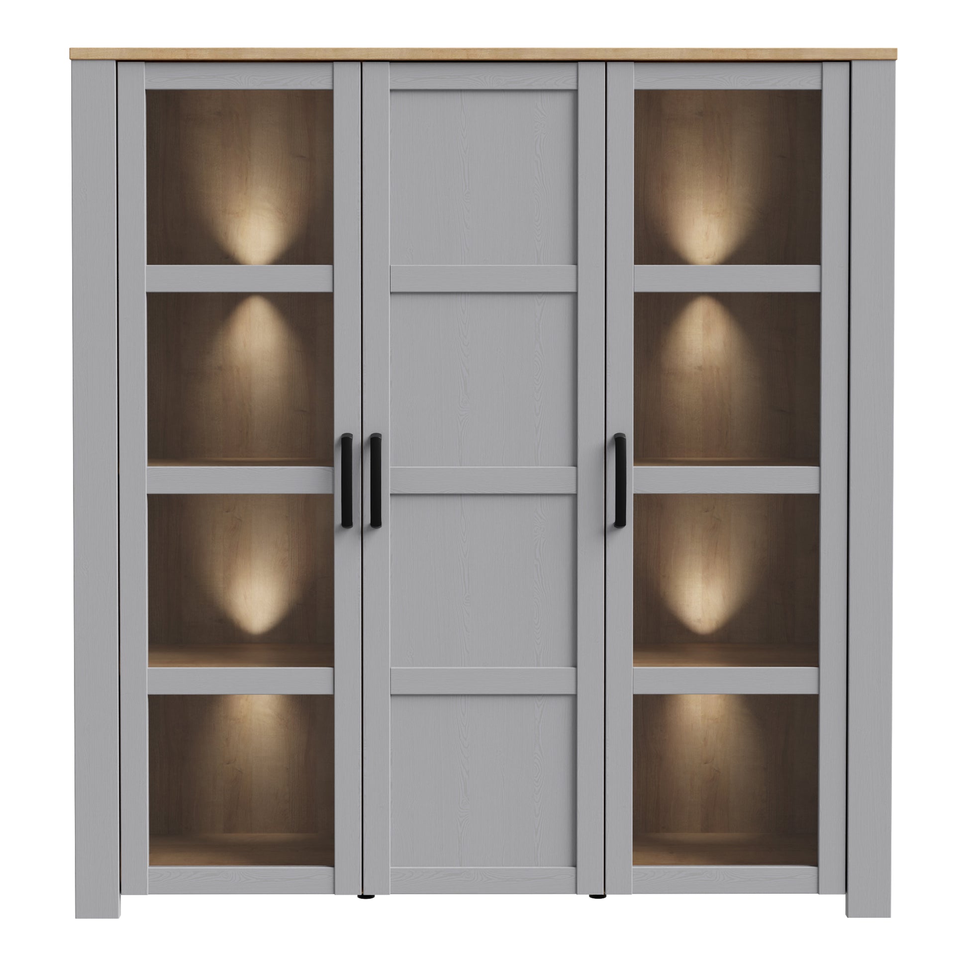 The Bohol 3-Door Large Display Cabinet seamlessly combines rustic charm with modern functionality. Featuring sleek black handles, soft-close doors, and LED lighting, it offers the perfect balance of elegance and practicality. Available in White & Oak or Grey & Oak, this cabinet is a standout piece for any living space.