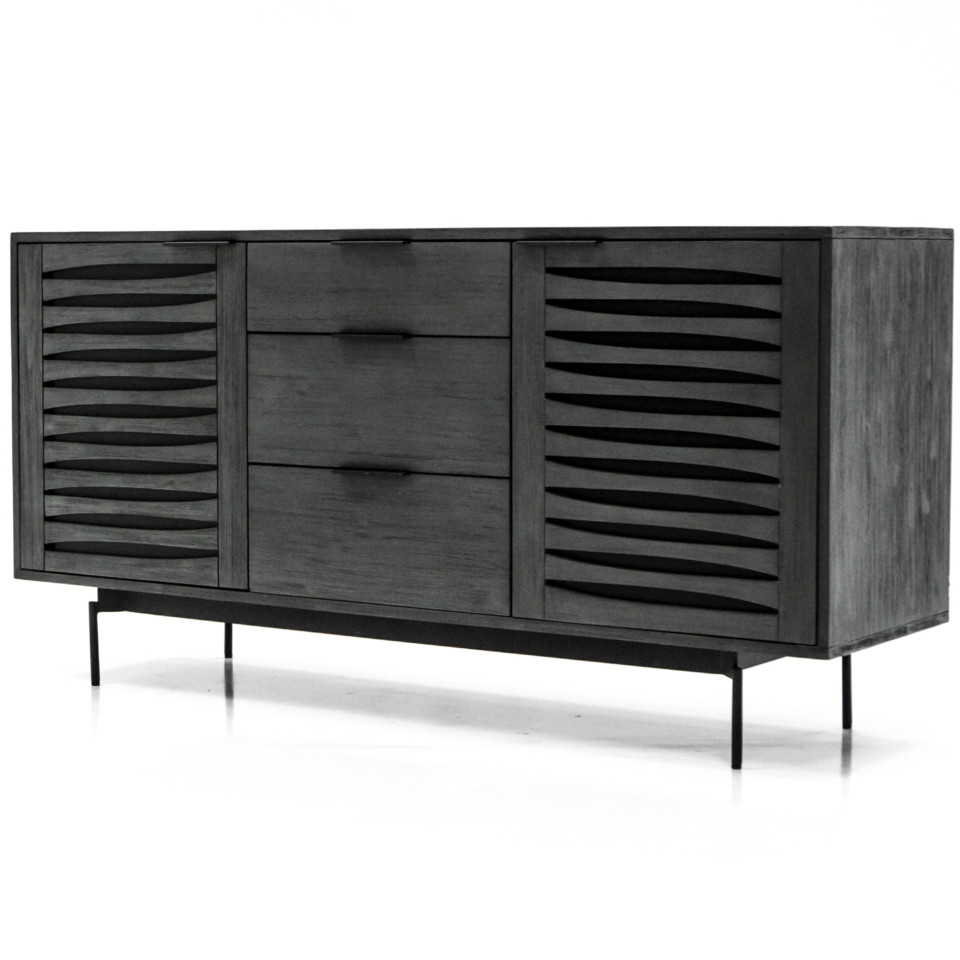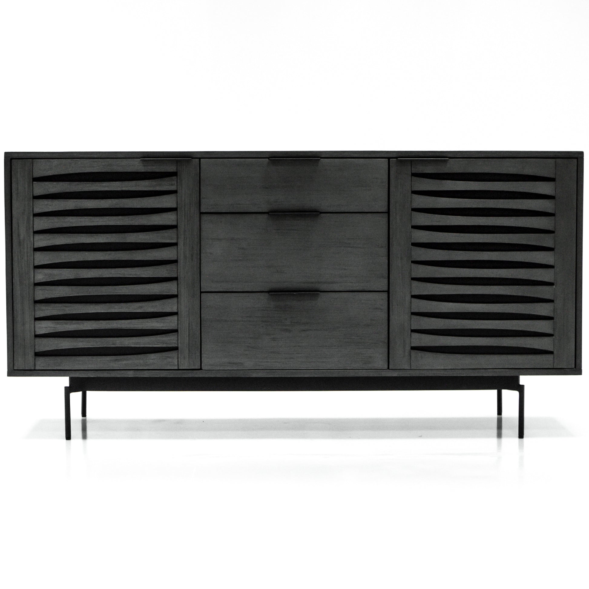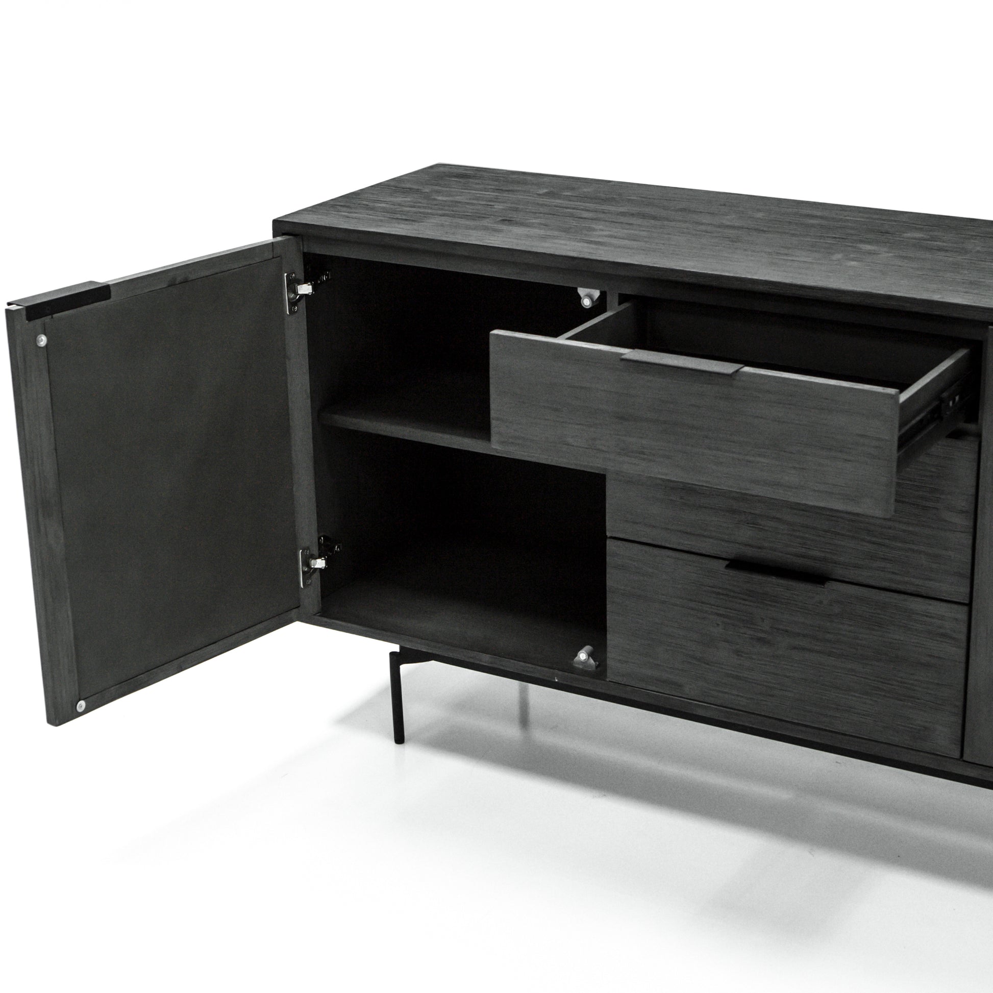 Bronks Black Acacia Buffet Cabinet with Two Doors and Three Drawers