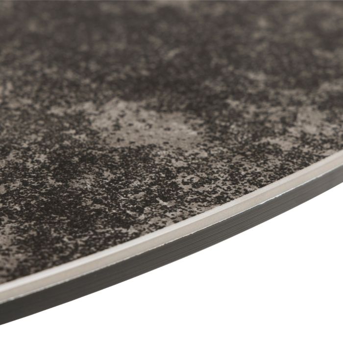 Sophisticated black marble-look ceramic dining table with open-frame pedestal base. Timeless elegance, easy to maintain, and perfect as a centrepiece.
