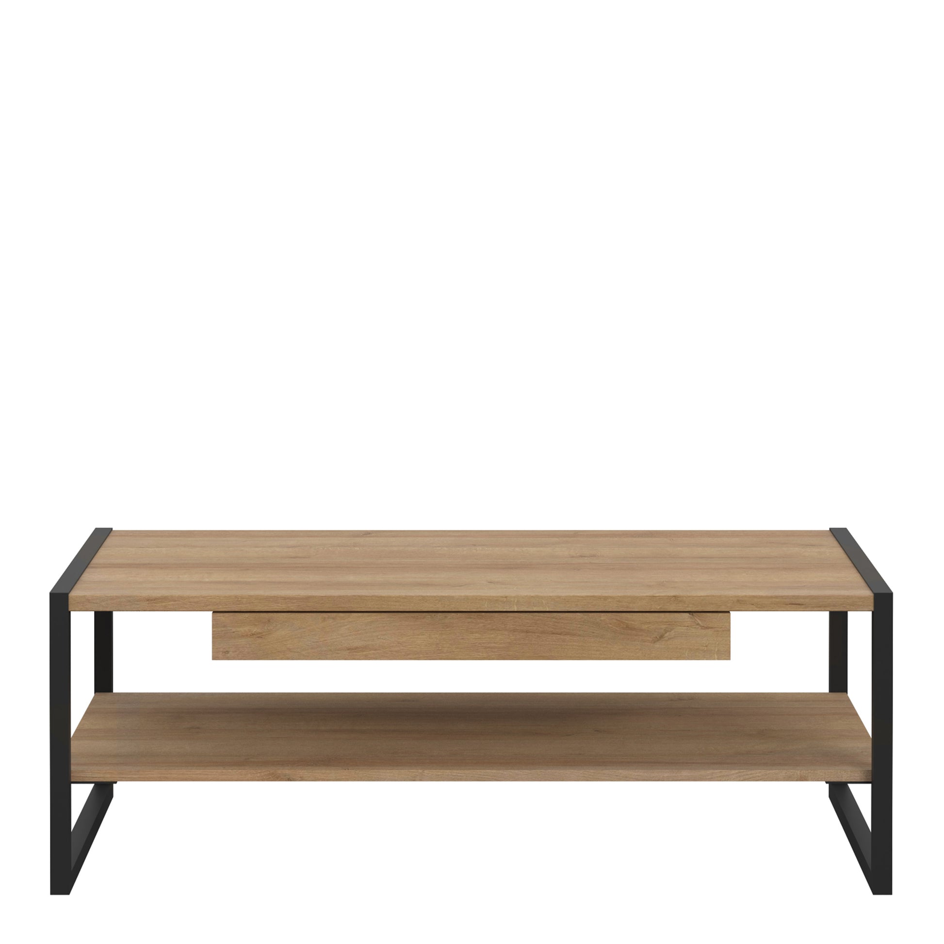 - Contemporary Industrial Design, Warm Riviera oak and black matt, 1 drawer, Black metal handle, 1 shelf open storage, Matching items available