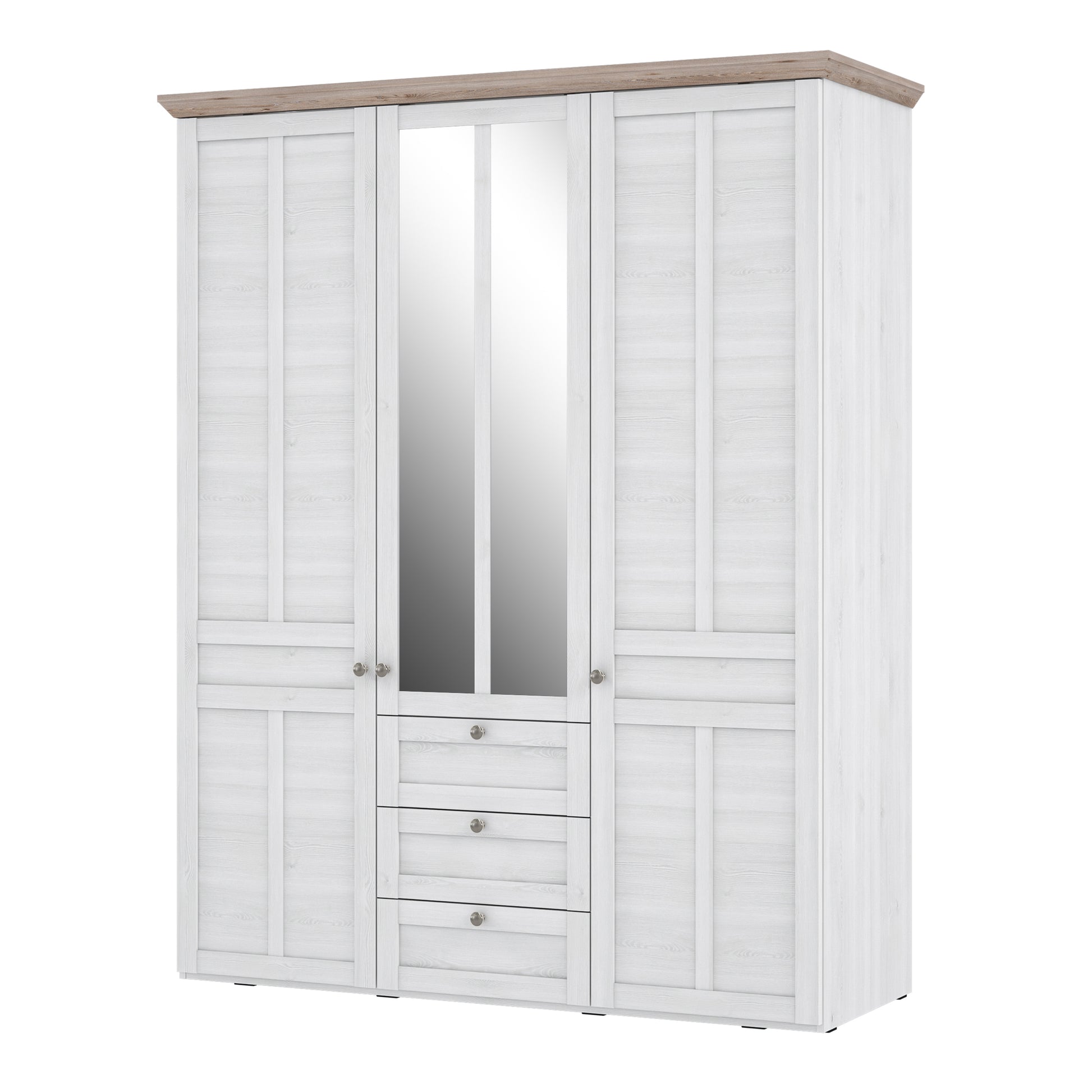 - Traditional design, 2 soft closing doors, 2 mirrored doors, 3 drawers, Hanging rail, Internal shelves, Snowy oak effect
