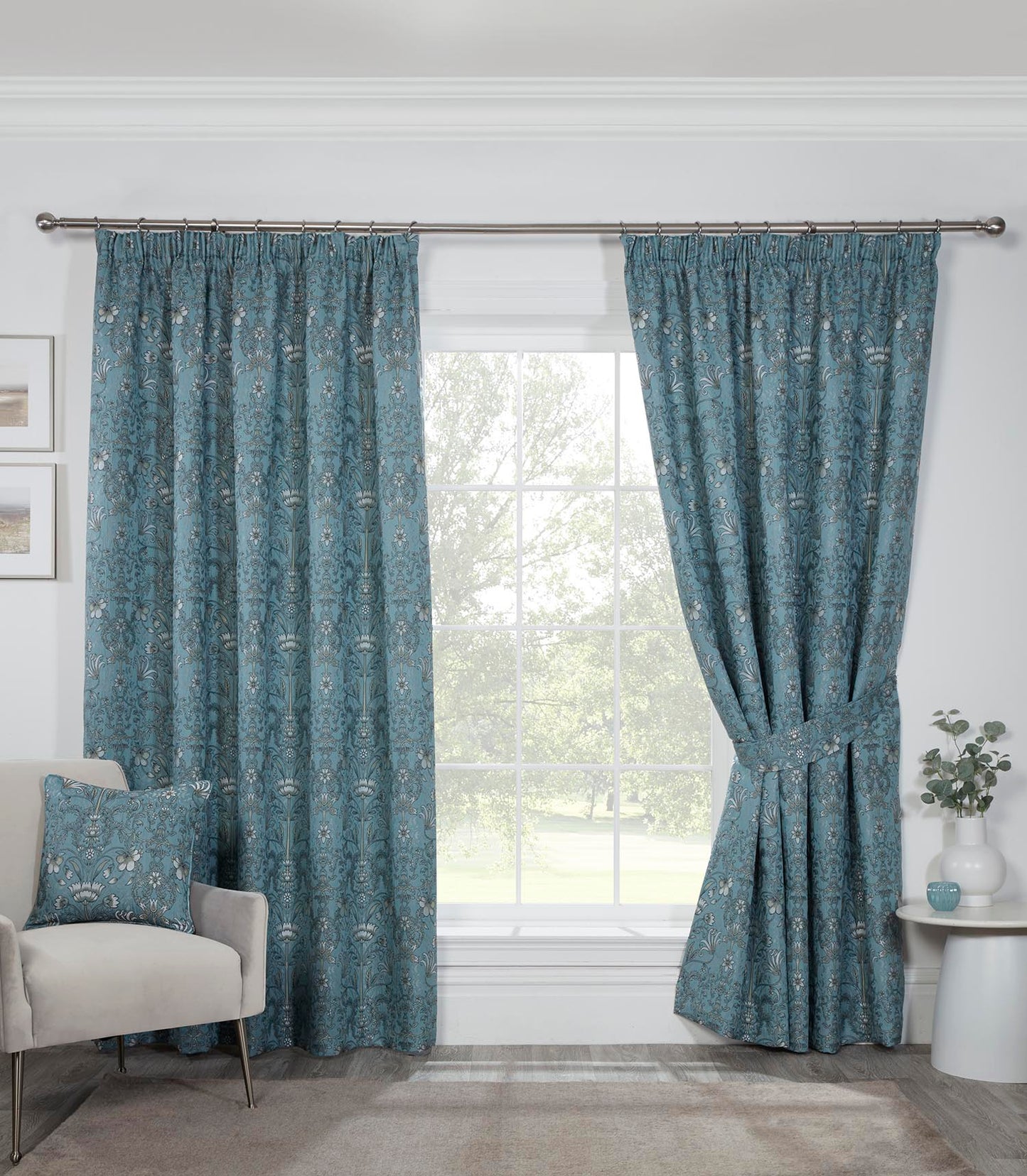 Kyoto Floral Jacquard Lined Pencil Pleat Curtains