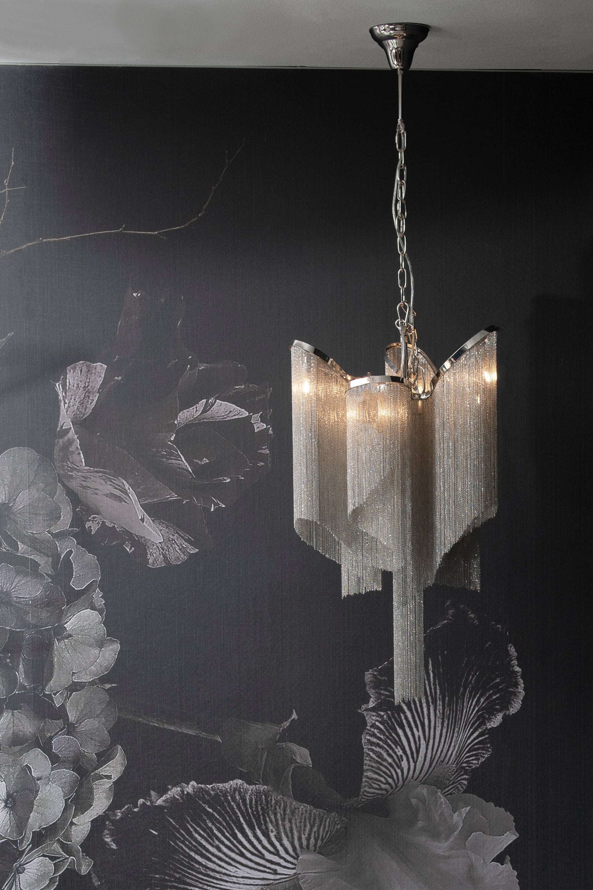 Niagara Silver Chain 6 Bulb Pendant Lamp Small