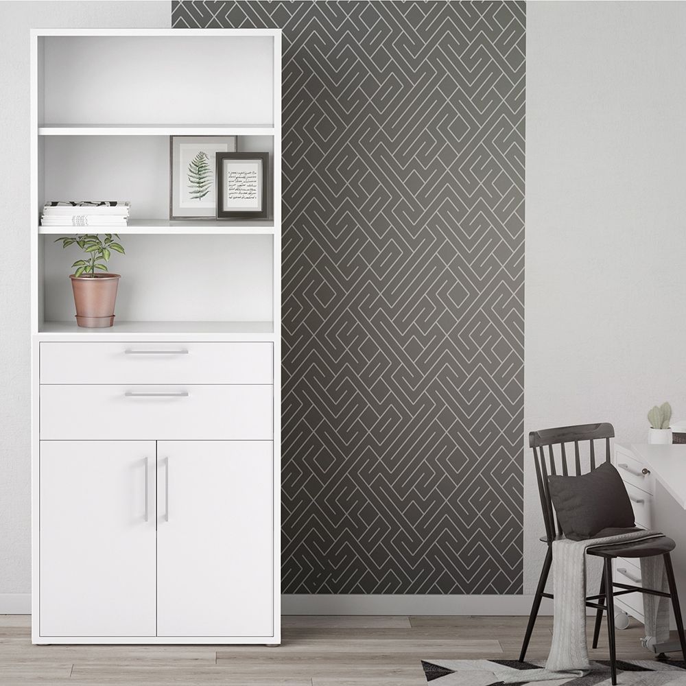 Prima Bookcase 3 Shelves with 2 Drawers 2 Doors