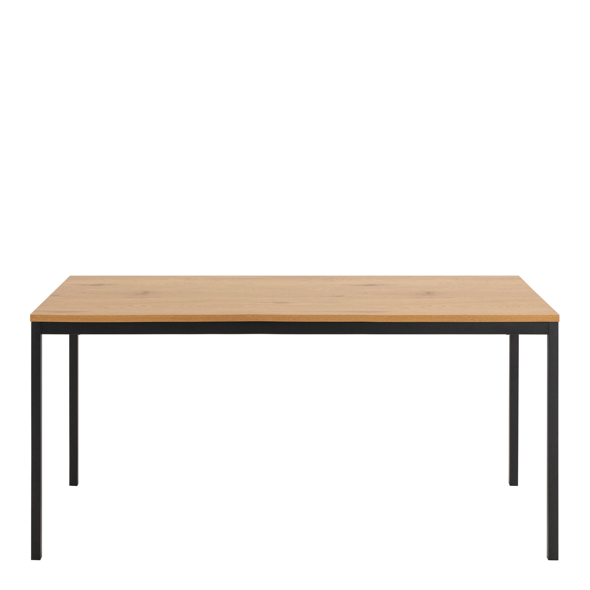 Feast your eyes on this elegant dining table, which features a matte wild oak effect top and a robust matte black steel base. Its generous dimensions provide ample space for gatherings, making it a central piece for any dining area.