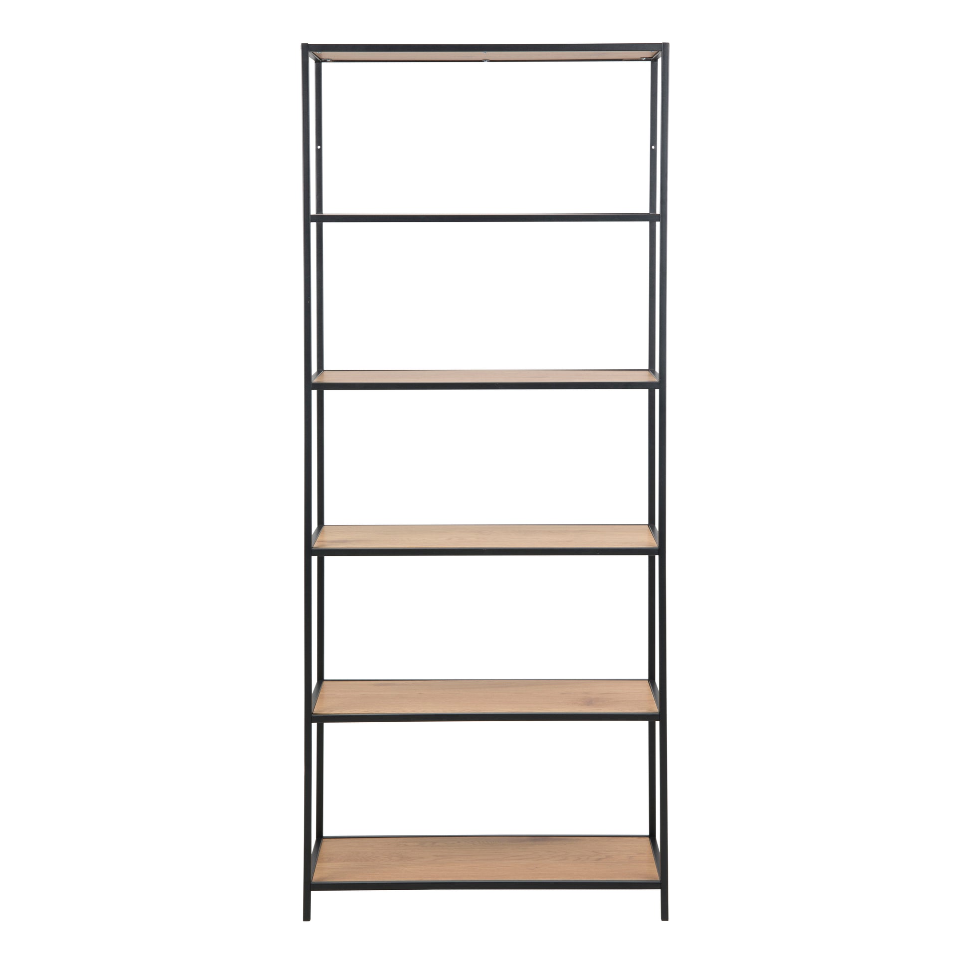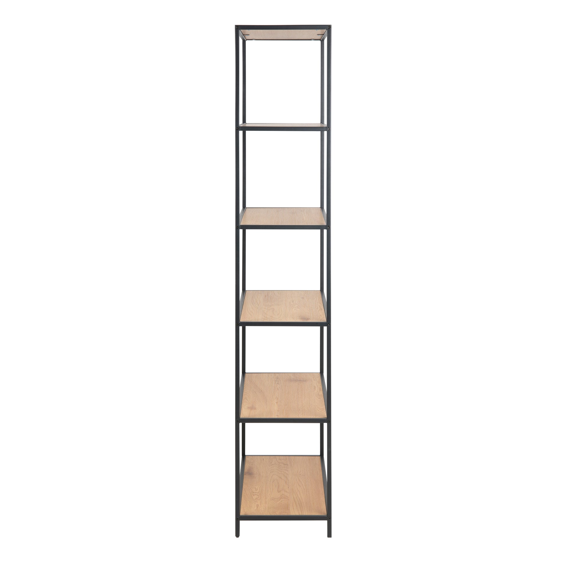 Seaford Tall Black Metal Bookcase with 5 Shelves in Oak
