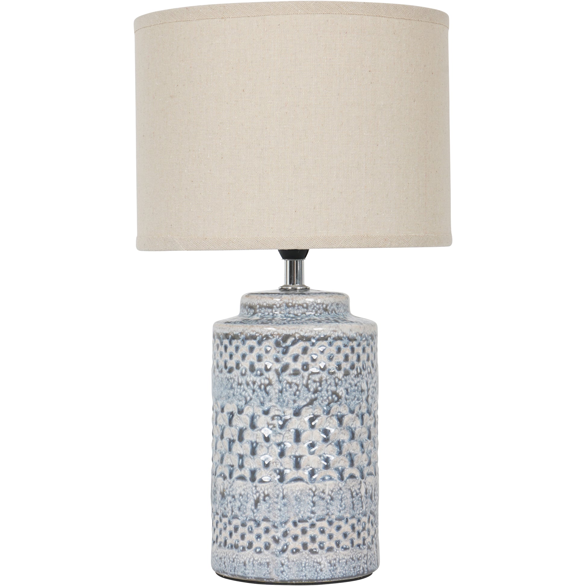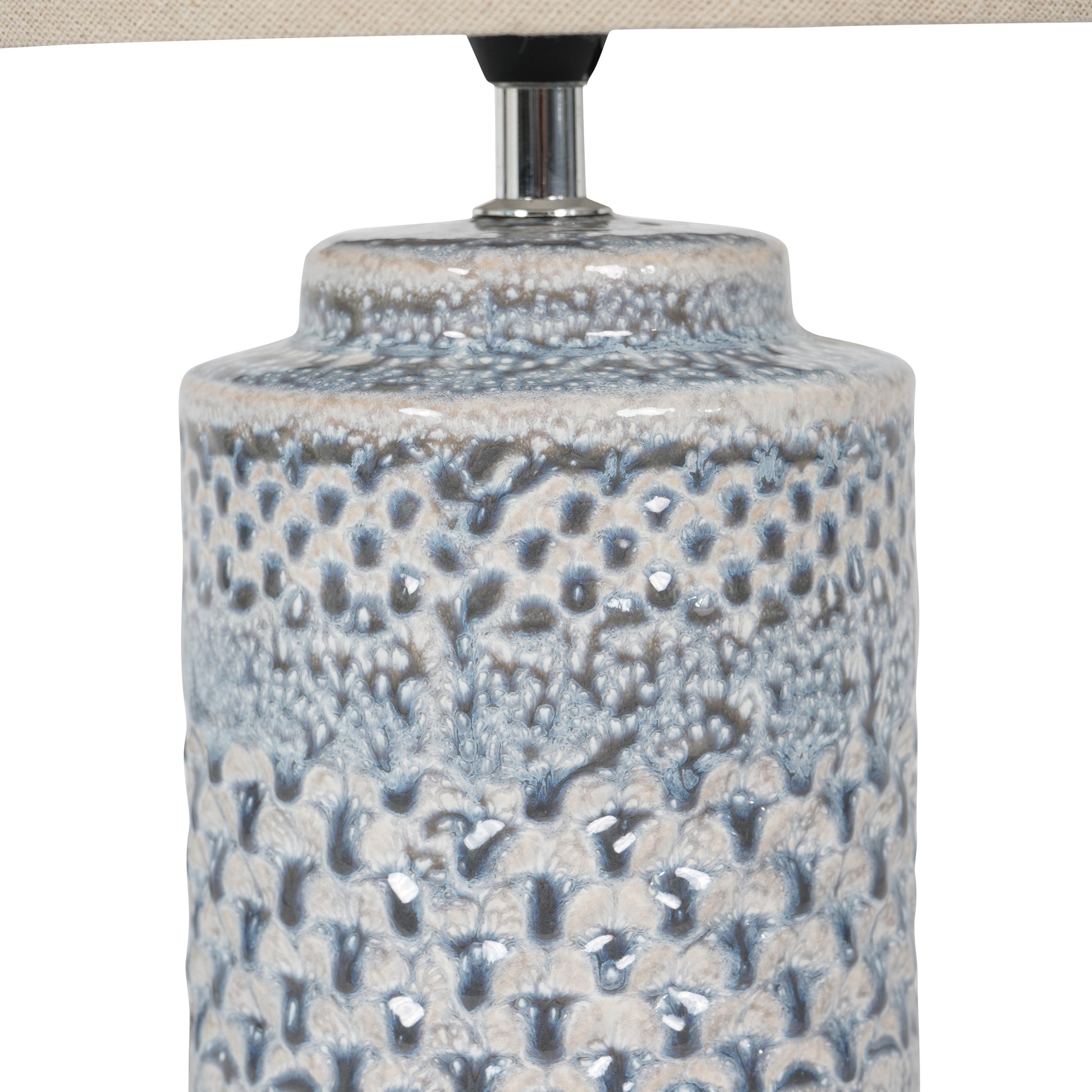 Stormy Sky Glaze Table Lamp with Cream Drum Shade