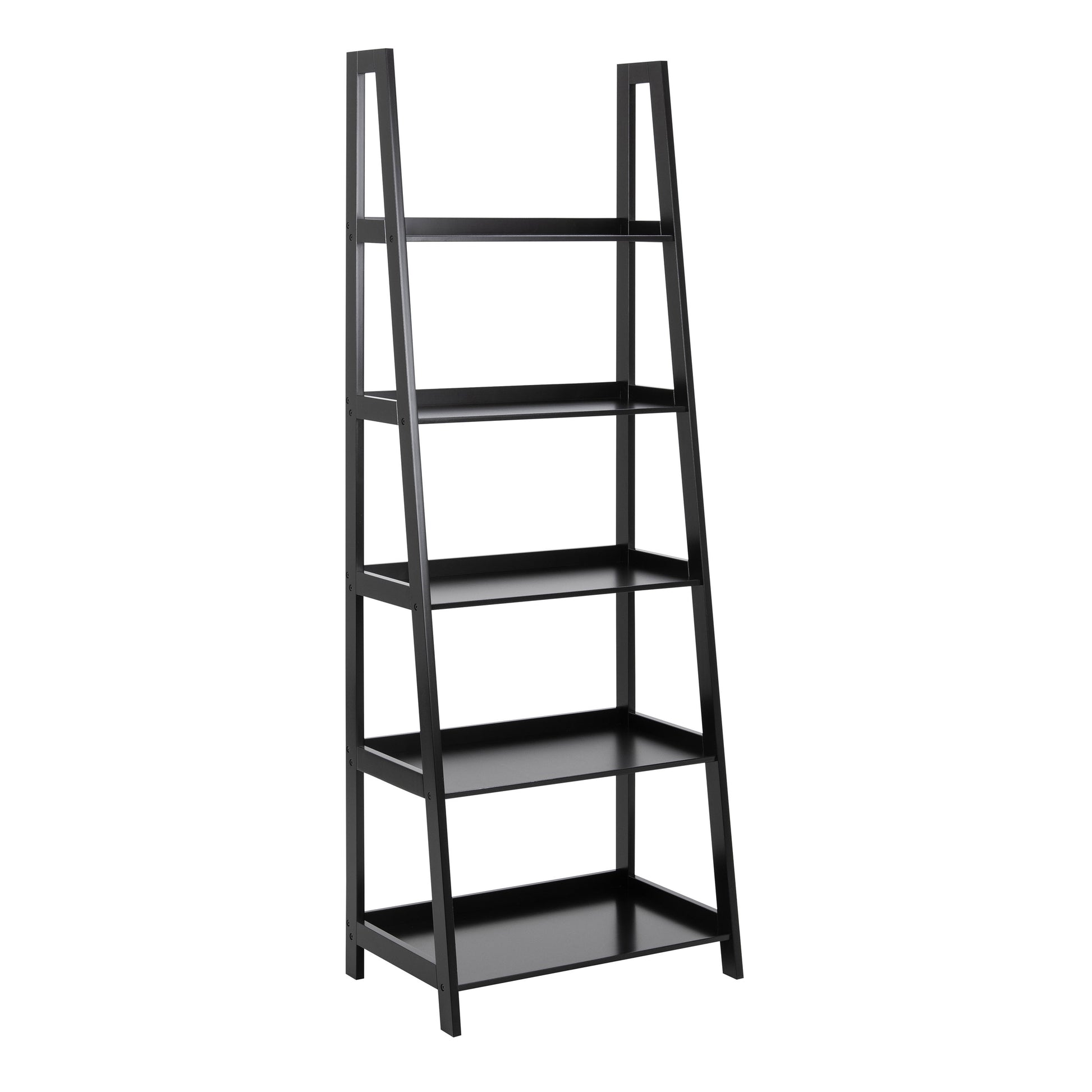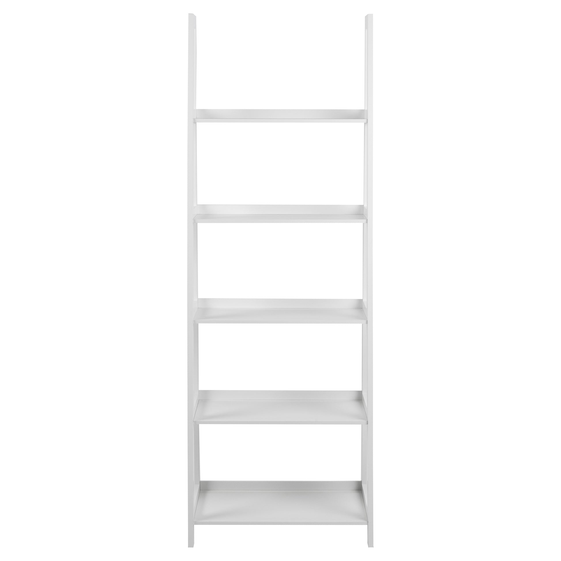 - Ladder bookcase for item display, 5 shelves in different sizes, Free-standing and steady design, Durable painted wood , Easy to assemble ,